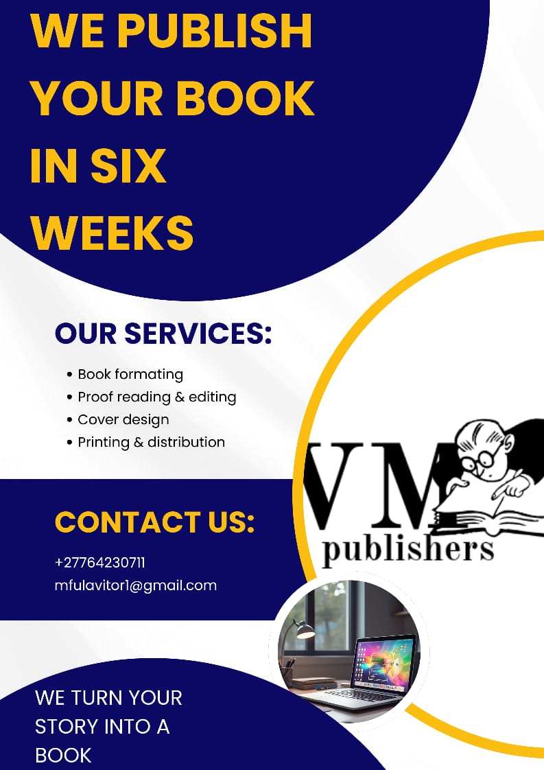 VM Publishers is a dynamic publishing house founded by Victor Mfula, dedicated to helping ... independent authors bring their stories, ideas, and information to life. With a range of publishing packages tailored to suit all types of authors, VM Publishers offers affordable prices without compromising on professional and competitive services. Whether you're a seasoned writer